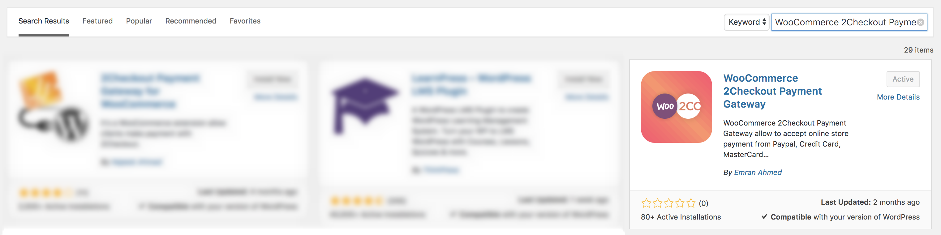 - Search for 2Checkout Payment Gateway for WooCommerce in the search field. Install and Activate WooCommerce 2Checkout Payment Gateway